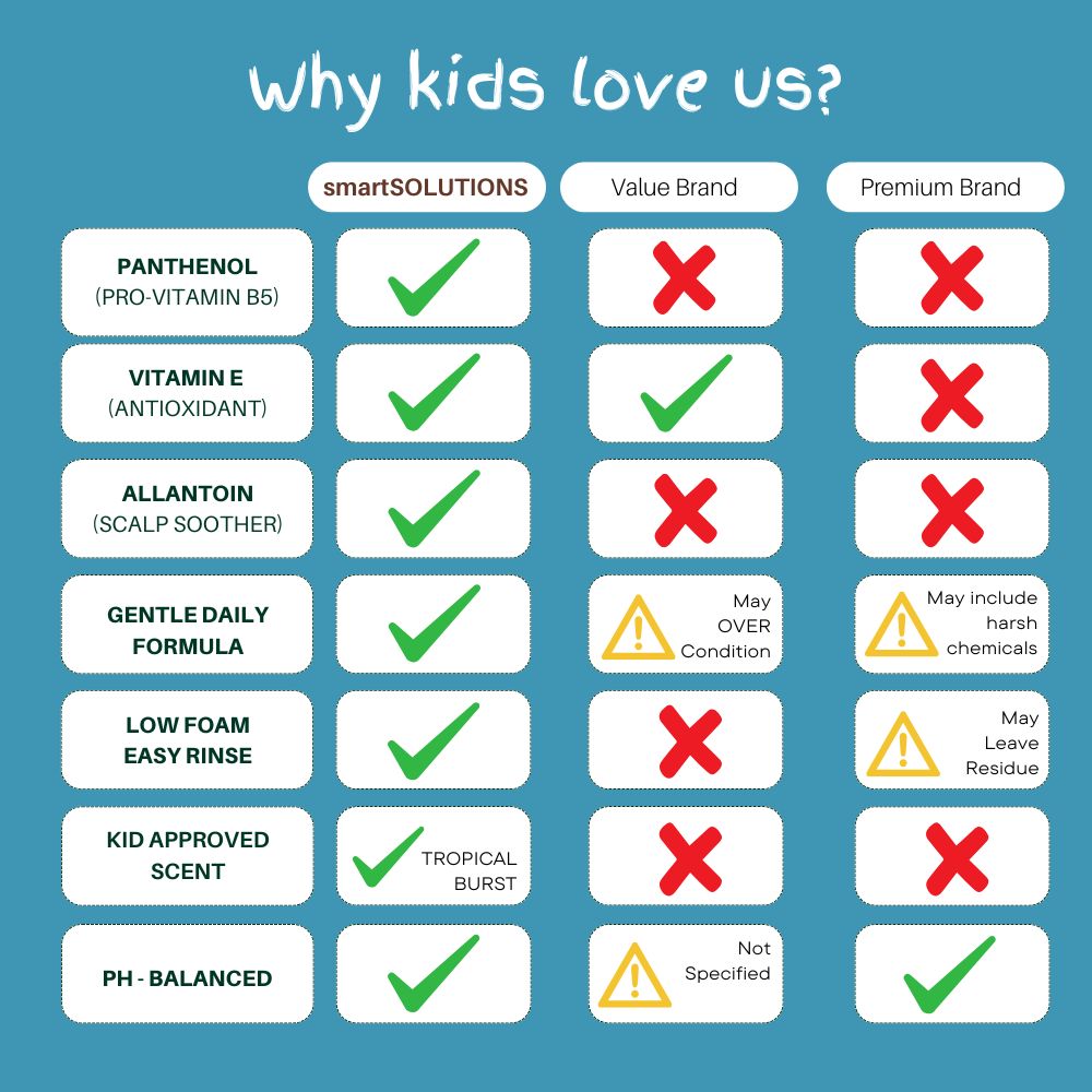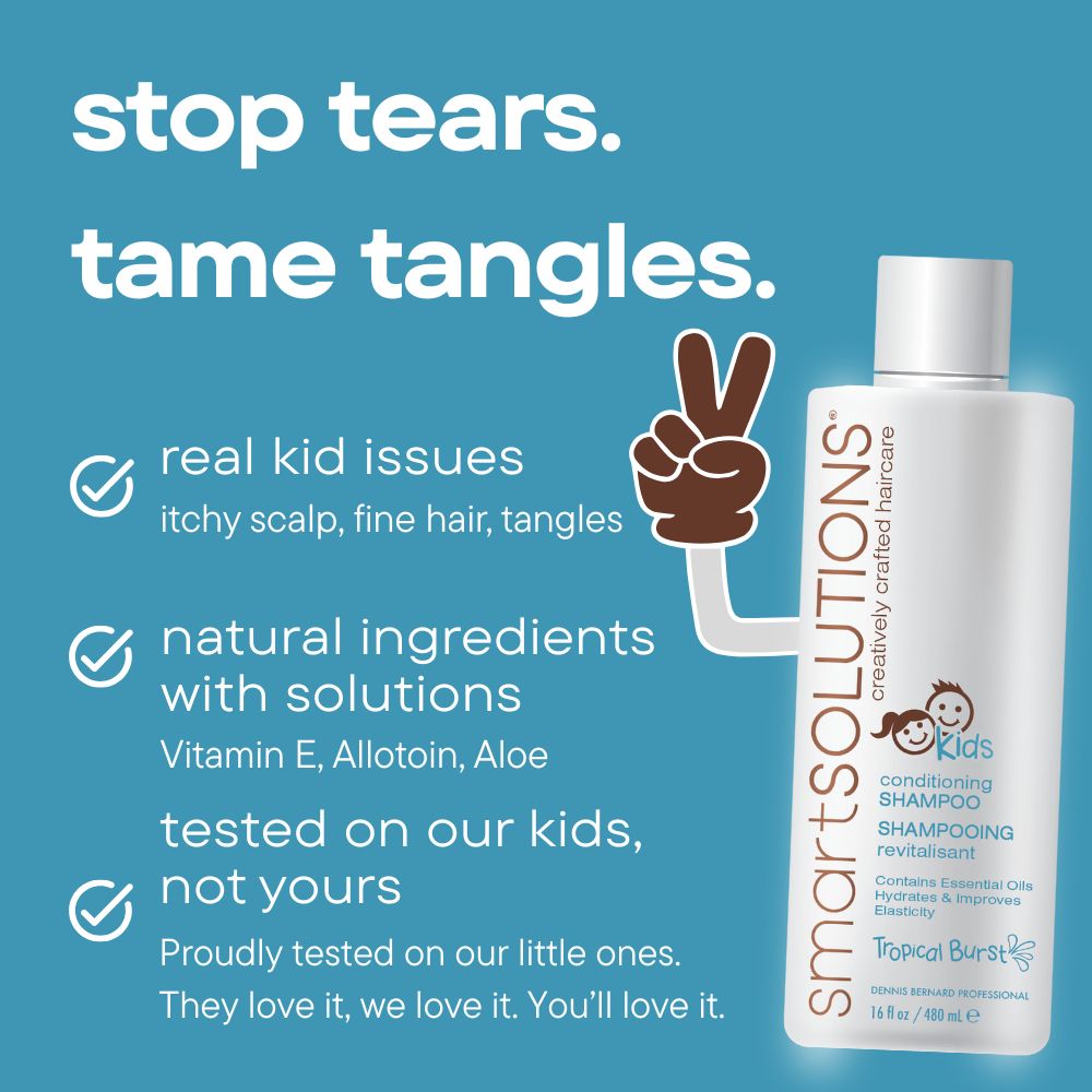 smartSOLUTIONS conditioning SHAMPOO is a tropical treat made just for kids, bursting with a fun fruity fragrance that turns bath time into playtime. Infused with hair-loving ingredients like soothing Oat Extract, nourishing Coconut Oil, and hydrating Castor Oil, this gentle formula cleanses and conditions in one easy step leaving hair soft, smooth, and totally tangle-tastic.